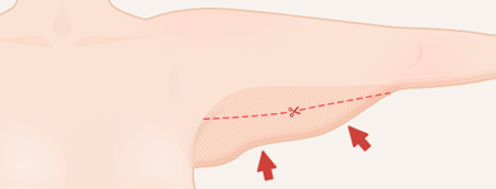 2段階 横切開脇下から上腕中央までのたるみ
